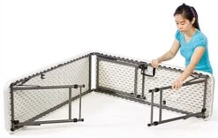 These portable stands adjust at given intervals between 24-1/2″ and 42″ high and are ideal for a wide variety of events! The versatility offered with these displays is an excellent value! Each of these adjustable-height folding tables includes three sets of sturdy grey powder-coated steel legs with locking pins. The speckled gray plastic top is waterproof and stain-resistant. The narrow design of this adjustable-height folding tables is a great space-saver in busy or crowded areas. The affordable price makes purchasing multiple blow-molded table stands a smart choice. An easy, comfort-grip handle located underneath these adjustable-height folding tables, allows for easy transportation between locations.