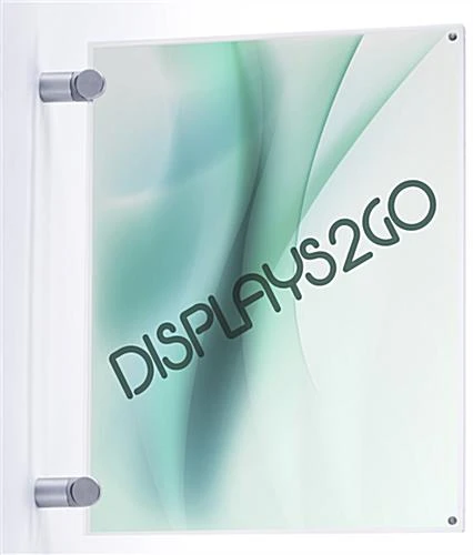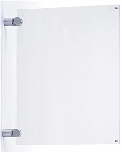 This corridor sign mounts onto the wall using two silver standoffs and is great for holding name plates. Designed as a double sided display, the holder is comprised of two transparent panels. Each 8.5” x 11” sign is equipped with a magnetic closure to keep graphics in place. Not only does this maximize the frameless design, this also makes signage changes quick and easy. Users don’t even need to remove the unit from the wall; by gently pulling apart the magnets, users can replace name plates or other graphics in moments. Offices, hospitals, and other high traffic buildings could benefit from a sign designed for wayfinding and directions. The double-sided display allows graphics to be seen from both directions. Since the holder mounts directly to the wall and has an easy-to-use quick-change design, it is ideal for placement above doorways and along corridors.