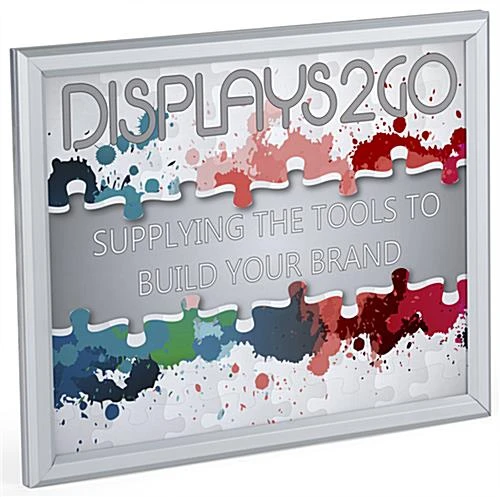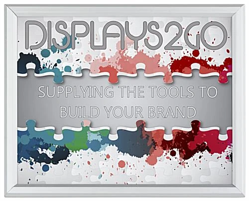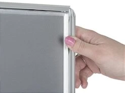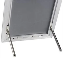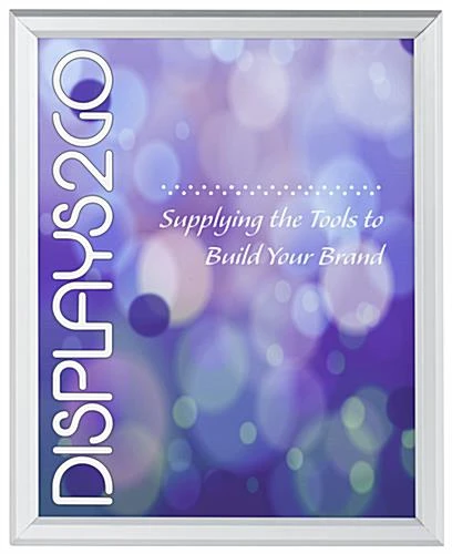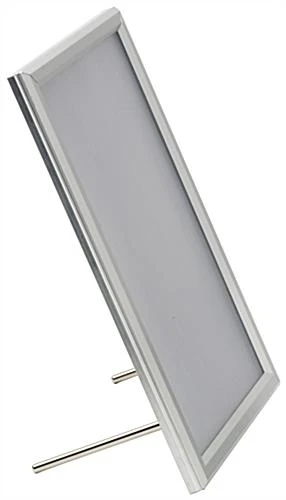 This 8 x 10 aluminum snap frame has a 15mm silver profile. Beveled edges add style, making the holder ideal for business use. The quick change snap frame makes updating room numbers, name plates, and more a painless process. Users simply lift the silver profile, remove the shatterproof lens, and insert new graphics! A set of two dowels enables the snap frame to be used for both tabletop and wall mount display. Graphics can be oriented in either portrait or landscape view. The quick change design of this beveled holder makes it great for use in high-traffic areas such as lobbies or office suites.