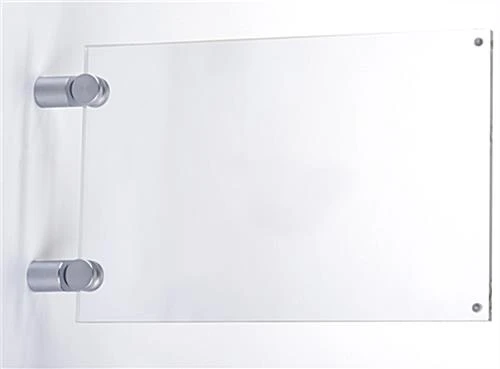 This hallway door sign is made from clear acrylic for double-sided viewing. Two silver standoffs secure the holder to the corridor wall. Ideal for use in fast-paced environments such as corporate buildings, the 9” x 5.9” door sign features a magnetic closure that allows for quick signage changes. Some users place the frame near the front entrance or lobby, while others mount the holder strategically along a corridor above doorway leading to various departments. Each door sign features a convenient slide-in loading style that doesn’t require removing the holder from the wall. The sleek, neutral color scheme ensures that the frame will look great in the front entrance of even the most upscale of buildings!