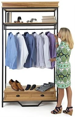 Industrial Rustic Clothes Rack with Multi-Tiered Shelving and Dual Tone Finish