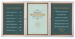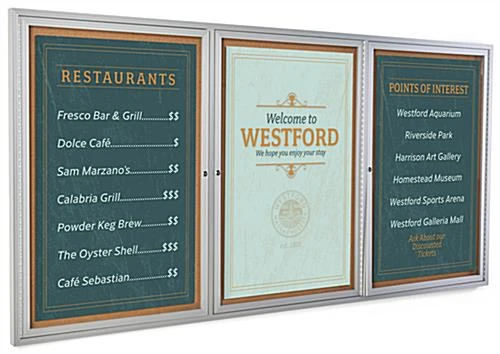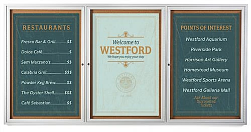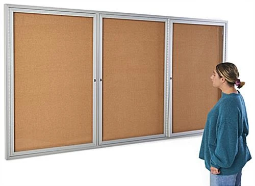 96″ x 48″ 3-Door Locking Cork Board with Anodized Aluminum Frame