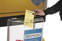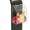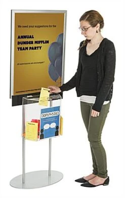 This silver floor standing lead box is a dual-use display item to help you promote your cause and interact with your target audience. Use this custom sign holder to generate donations for your coming fundraising efforts, giveaway contest or whenever you need to solicit feedback or contributions. Fitting posters sized 22” x 28”, this double-sided poster lead box includes a sturdy divider and lenses to prevent your eye-catching graphics from drooping and helps reduce glare. Each display container comes with an 8.5” x 11” front pocket, providing you with more opportunities to grab the attention of passerby. Make this sign holder a distinctly your own by using custom graphics to help promote a fundraising drive, raffle, contest, and much more. With its versatility and design, this lead box can be used in a variety of environments.