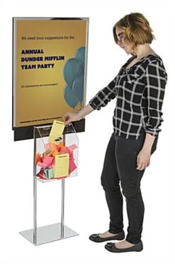 Silver Sign Stand with Sweepstakes Box – Front Suggestion Card Pocket