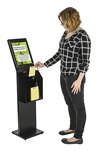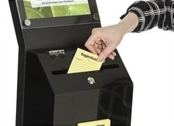 This black charity collection box is an essential display item for any fundraising effort. Distinguishing it from other ballot cases, this acrylic donation stand is mounted on a sturdy sign holder, making it a great option for high traffic areas. At four feet tall, this floor standing collection box is tall enough to get noticed in a busy lobby or a well-attended fundraising event, but small enough to still be manageable to move around. Swap out your graphics quickly with this sign holder’s easy-grip screw caps, keeping your display looking updated and fresh. Featuring a lockable lid, the contents of your acrylic donation collection box will remain secured and concealed. Each ballot container comes with a front pocket, perfect for displaying suggestion, raffle or contribution forms.