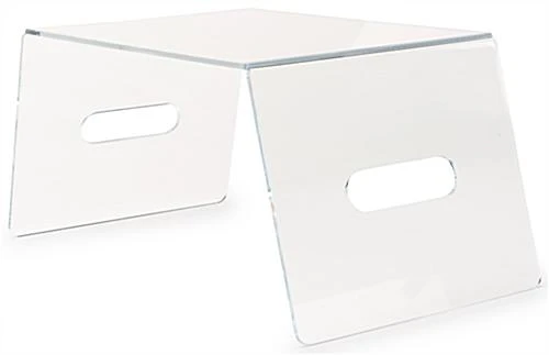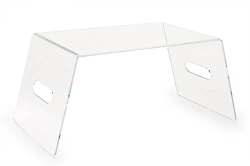 With our acrylic laptop riser, itβs easy to create an ergonomic home workstation that fits your monitor stand, work tablet or printer. Use this clear lap desk and make your work from home space more comfortable by raising your computer monitor or iPad to the perfect viewing angle to relieve neck strain and prevent headaches. The sit-stand ergonomic acrylic laptop riser rests 9.5β from a tabletop to allow you to stand and rest your back while working long hours. Ample height allows the lap desk workstation to turn into a bed tray, complete with side handles for moving around as you work from home. The monitor stand is completely multipurpose. Whether you use the monitor stand as a sit-stand desk or a bed tray, it can support up to 10 lbs. of weight. Featuring high-quality 0.22β thick acrylic, the laptop riser is hand bent to ensure your investment will be long-lasting.