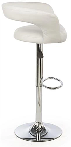 This white leather bar stool, with its contemporary and unique design, is sure to impress at your next trade show or event. Also perfect for restaurants and cafes, this chair features a height adjustable hydraulic lift that changes the unit from table to highboy elevation. Each modern bar stool has a leatherette cushioned seat with backrest that ensures user comfort. Featuring a 360° swivel functionality, each upholstered unit is great for conventions and cafes where socialization is a common occurrence. For added convenience, not to mention cost savings, this bar stool is sold as a set of two chairs! Use this height adjustable hydraulic seat in any exhibit booth or restaurant for long lasting comfort and a quality product.