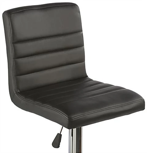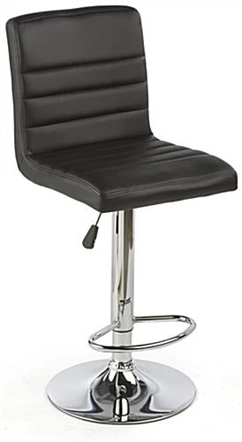 This black leather bar stool is the ultimate combination of modern style and comfort. A leatherette cushioned seat has a high backrest designed to ensure user comfort. Each contemporary bar stool features a height adjustable hydraulic lift that allows the unit to be altered for table or counter use. 360° rotation permits the seat to swivel, a great functionality for trade shows! Avoid becoming easily fatigued from long days in an exhibit booth with this bar stool equipped with a foot rest and high cushioned backrest. As an added convenience, each order of this height adjustable hydraulic chair comes as a set of 2 seats!