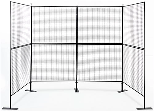 This art fair wire display wall features a U-shaped design that is ideal for showcasing artwork and paintings in areas with high traffic. This 100″ x 75″ gridwall configuration is constructed of durable powder-coated iron in a matte black finish that makes it resistant to scratches, chipping, wear, and fading. Without the use of any tools, each art fair display wall is easy to assemble and disassemble for convenient transportation. The lightweight composition of this U-shaped gridwall fixture allows it to be highly portable for traveling exhibits such as pop-up shops, trade shows, and craft festivals. Customers can transform these matte black grid panels into multiple configurations, including a V-shape or straight wall form. This double-sided wire display wall will change the way you present your handmade goods and artwork.