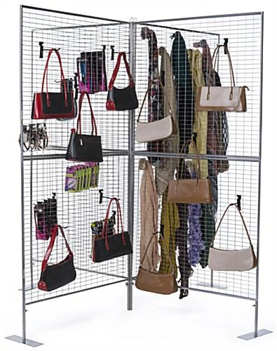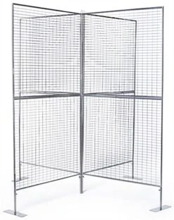 These art show display panels are great for a gallery exhibit or craft fair. Each of the walls faces a different direction, providing your products with optimum exposure. The metal display panels are crafted from iron and feature a neutral silver finish that looks great in any environment. Each of the walls assembles together to create a four-sided showcase. In addition to use at a gallery exhibit or craft fair, the structures can also used as store fixtures in a retail environment.