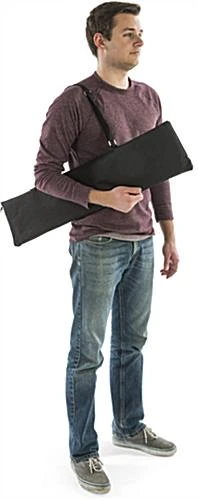 The portable banner stand with custom graphics is equipped with everything you need for trade show booth advertising. The lightweight display knocks down into the included carrying bag for easy transport to and from events. Set up the trade show portable banner stand in seconds by connecting the pieces of the vertical rod and mounting to the top of the base. Attach the personalized artwork by snapping the vinyl into the snap rails and sliding onto the brackets of the pole. Standing at 88” tall, the portable banner stand is a great booth display that can be seen from far distances in an exhibition center. Purchase replacement artwork for this lightweight advertising tool to replace same-size flags with new campaign announcements!