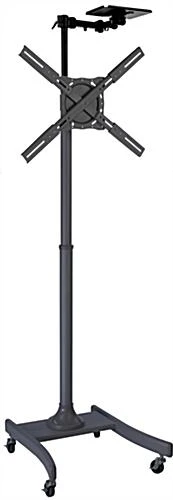 This black camera shelf is a great accessory for many of our MB series TV stands. The surface measures 12” x 8” and has a height-adjustable arm. The camera shelf is also designed to rotate a full 360 degrees. This meeting room accessory is a popular choice for teleconferencing and presentations, as it can be placed directly above a monitor or television. Choose this black camera shelf to use with your MB TV stand!