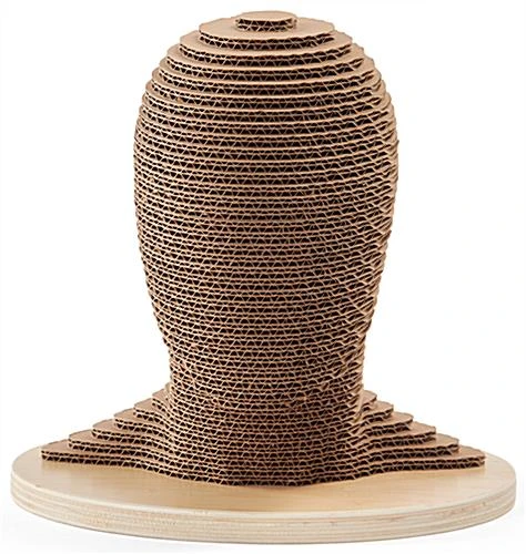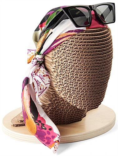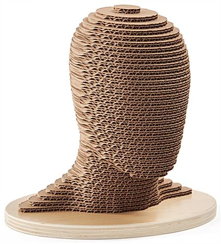 This unisex cardboard mannequin head measures 13.75” tall, providing ample space to showcase a variety of fashion accessories such as sunglasses, scarves, hats, and hairpieces. Each eco-friendly countertop bust features a unique, eye-catching layered design that is easy to assemble with convenient individually numbered tiers to guide you through an effortless setup. Because our ultra-modern cardboard mannequin head with abstract style is constructed of 100% recyclable material, you can be kind to the earth by fully recycling this display after its use is no longer needed. This eco-friendly unisex bust form sits on an oval poplar wood base with natural laminate finish and lightweight construction to easily move this fixture from one location on your selling floor to another. With its ultra-modern and neutral design, this multi-layered cardboard mannequin head makes a statement without distracting from your merchandise. Allow your best accessories to stand out with this abstract countertop bust form that will leave a lasting impression on guests long after they leave your store!