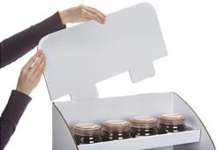 This tabletop cardboard display is the perfect low cost solution for your countertop point of purchase merchandising. The three-tiered white corrugated paper design provides your counter with an excellent option for showcasing numerous products. Stylish, affordable, and functional, the cardboard display with removable header features a 3 tier shelf design. Enhance your counter space with this unit and take advantage of small merchandising areas. Place the cardboard display manufactured from corrugated paper in an optimal area of your store to increase sales of new and existing products. The tiered white POP fixture ships flat and folds for reduced shipping cost, easy setup and a perfect layout.