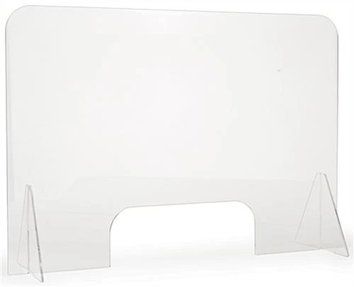 This clear countertop sneeze shield measures 44″ x 33″ and is an easy way to create more physical distance between your employees and guests during business exchanges. A transaction slot is included to make payments and everyday communications safe simple. This clear countertop sneeze shield is perfect for pharmacies, convenience stores, banks, food markets, and much more. its convenient knockdown-style design makes this acrylic barrier highly portable, which is great for test stations, trade shows, and events. This horizontal clear countertop sneeze shield will not only help your store enforce social distancing guidelines, but it will create an overall cleaner and safer environment.
