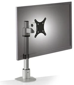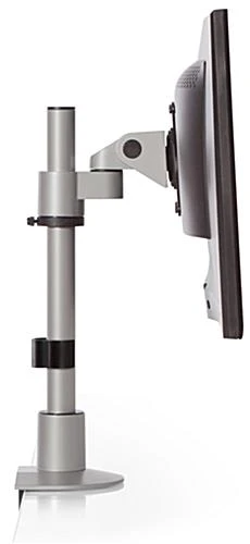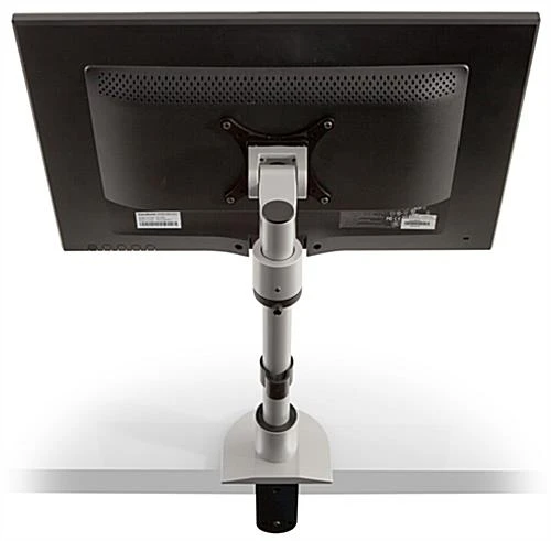 Durably constructed and contemporarily designed, this silver monitor stand is ideal for any service or retail environment. Each fixture comes equipped with 75mm and 100mm VESA mount brackets that fit many popular LCD and LED TV brands. The monitor stand features a FLEXmount capable of mounting the unit in six different configurations including on desks, walls, grommets and other surfaces. You can adjust the joint tension of the VESA mount bracket to prevent your LCD screen from moving while in use. Additionally, the monitor stand pivots and can be tilted over 200° for a pleasant viewing experience at any angle. Utilize this fixture in your retail outlet to transform virtually any surface into a modern kiosk!