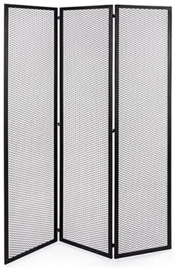 This hinged mesh retail display screen has a floor standing design with three panels that measure 15″ W x 72″ H each and can fold or expand to the full size of 45″ W x 72″ H. Great for retail stores, boutiques, gift shops, jewelers, garden centers, hardware stores, and more, this rustic-modern gridwall is a great way to create unique product showcases by hanging merchandise using S-hooks (SKU: ). This vintage-style hinged mesh retail display screen is excellent for back stock on the sales floor but is also a sleek room divider solution to create separation and privacy within spaces like beauty shops, spas, or nail salons. Our three-panel separator is made of durable black powder-coated iron with a 2mm thick grid and a 0.75″ frame for a long-lasting design. This contemporary floor standing unit is versatile, featuring a wide range of possibilities. This urban industrial hinged mesh retail display screen will instantly lend a modern-rustic aesthetic to any retail boutique, beauty salon, or gift shop!