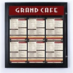 These notice boards, outdoor menu cases are durably constructed from aluminum extrusion with a powder coated black finish. The durable structure makes the unit great for long-term use outside and indoors. Each frame has a rubber gasket seal around the interior of the frame to keep moisture out and stand up to the weather. These outdoor menu cases, also known as shadow boxes, would therefore be an ideal display for use outside. Even though, these bulletin boards are designed for use outside, the frame is also applicable for indoor use. Businesses can use these outdoor menu cases that have a magnetic board to communicate messages even after store hours! The frame is equipped with a lock to prevent unauthorized changing of notices. These outdoor menu cases that are lockable can keep the posting secure and prevent vandalism as well. A set of keys is also included with the unit. Bulletin boards, like the one seen here, can be mounted vertically or horizontally on any wall area. Wall anchors and screws are provided with the unit for easy installation. These notice boards are available in other sizes as well. Buy these wall frames at an affordable price from this wholesale supplier!
