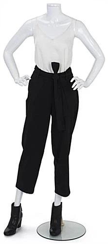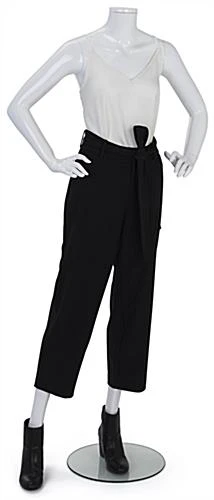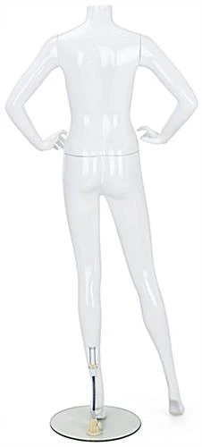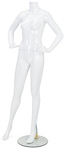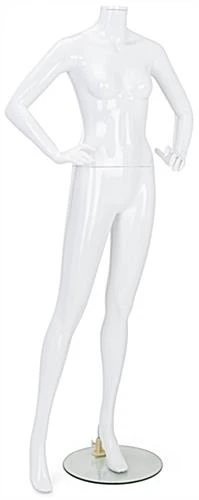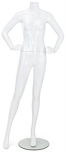 Our headless abstract female mannequin is an ideal display solution, perfect for merchandising your brand’s most popular women’s clothing items within storefront windows or throughout your selling floor. Made from long-lasting recyclable polypropylene material, each fashion figure with stylish glossy white finish is extremely durable, and can be recycled after many years of use. Each abstract female mannequin features accented feet, formed hands, and a proportional full body to realistically showcase clothing and accessories for customers. This floor-standing fashion fixture is easy to assemble and dress, as the arms, hands, and torso detach for quick visual merchandising updates when necessary. Perfect for retail stores, boutiques, or showrooms, this abstract female mannequin offers customers a full view of merchandised products like clothing, shoes, handbags, and more. Standing on a clear tempered glass base, calf, and heel rods secure the full body fashion figure in place while allowing you to pivot the fixture in any direction. Display your best merchandise on this floor-standing glossy white female mannequin and encourage shoppers to try-on today!