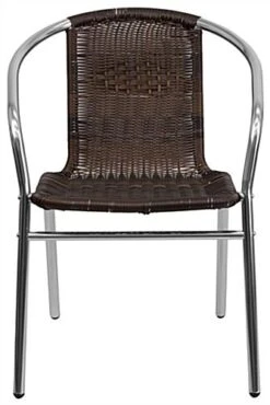 Add this aluminum rattan restaurant stacking chair by Flash Furniture to your modern outdoor seating area. With sturdy construction and lightweight corrosion-resistant material, this piece can hold up to the elements in many climates. When paired with a matching table, this rustic-modern rattan restaurant stacking chair works well on patios, decks, and other outdoor seating setups. Ideal for any number of commercial applications, this piece marries elegant design with solid construction. Each rattan restaurant stacking chair fits together easily for quick, simple storage. Match this to many table styles for a modern commercial furniture style in your business.