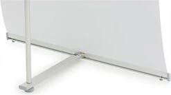 This retail banner stand has an L-shaped design for added stability. The floor-standing fixture measures 80.25 inches tall and is sold with a custom-printed vinyl banner that measures 23.5 x 78.75 inches. This retail banner stand is designed with portability in mind. The 3-piece fixture is easy to set up and does not require the use of any tools or any additional hardware. Simply connect the aluminum post to the base and the slide the vinyl graphic into the banner rails. Attach the rails to the pole, which will pull the graphic taut. This retail banner stand is even equipped with a black canvas carry bag for storage in-between use.