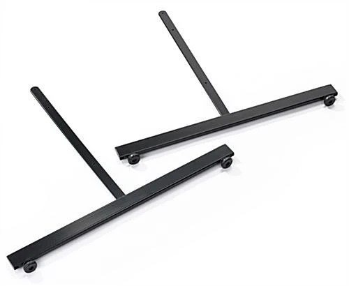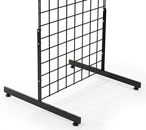 Pair this black gridwall T base rectangular tube with your existing wire panels for complete floor fixtures. One unit equals two legs that create a stable display. Floor levelers and hardware are provided for each metal gridwall T base that supports a single wire panel (sold separately).