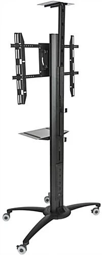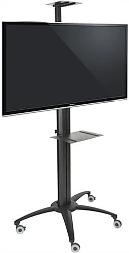 This flat screen TV trolley perfectly complements any school, shop, or other environment with a modern sleek design. Built with high quality materials such as aluminum and steel means this cart will be a worthwhile investment solution with longevity in mind. Quickly switch the versatile flat screen TV trolley monitor bracket from landscape to portrait mode by loosening the mount screws and turning the display. Included high quality accessory and camera shelves offer plenty of space to keep all your equipment set up simultaneously. Integrated cable management solutions and electrical outlets with on/off switch keep your shop looking organized by efficiently hiding unsightly wires. Each flat screen trolley features a height adjustable monitor mount which can quickly be positioned on the column for perfect visibility in public environments.