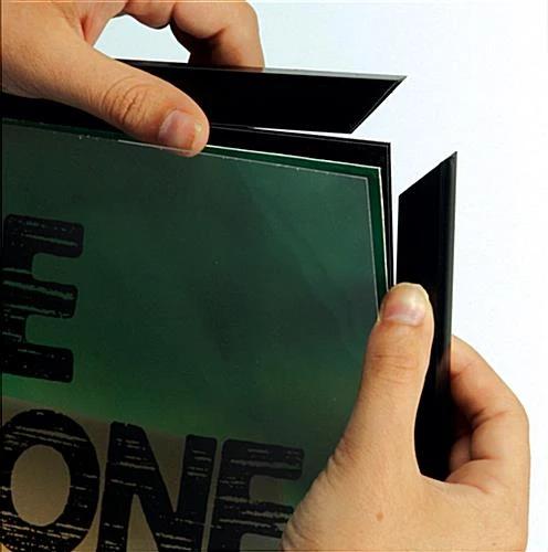 This movie poster frame encloses your printed movie posters behind a non-glare plastic lens and is accented with a black plastic picture frame. This picture holder is ideal for any setting or decor. This movie poster frame is lightweight and is constructed from three components: a lightweight rigid plastic backboard, a no-glare .030 thick non-glare plastic lens cover, and the black perimeter frame molding that easily slides “on and off” all four edges for quick poster changes. Change your poster prints by sliding the framing or moulding off the backboard, lifting the lens cover and inserting your poster graphic, then snap the movie poster frame molding back onto the edges of the backboard.