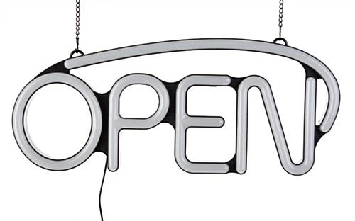 These open signs that have vibrant lights do much more than simply communicating to customer that the establishment is open for business. The illuminate window displays also helps to increase foot traffic into the store. These open signs that are lightweight can be easily hanged on a door, in window or store fronts with the two hanging chains included. LED displays, like the one seen here, are great for use in restaurants, churches, bakeries, coffee shops, tanning salons and car dealerships. These open signs, also known as window lightboxes, should only be used indoors. The entire unit is safe to touch and operate. A power plug will be provided together with this unit. Purchase this business signage at an affordable price. These window displays will be a great investment for any businesses!