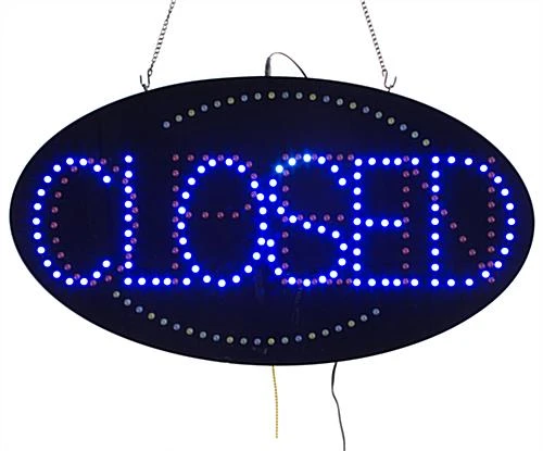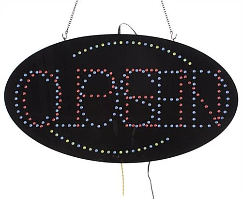 Open LED signs will help increase the amount of foot traffic flowing into a business. These flashing LED displays, open LED signs not only look great behind a store window, but they will also save your business on energy consumption, even when left on 24 hours a day. Open LED signs, also known as LED business signs, use only 8 watts of energy and can be used for up to 100,000 hours. Another way these open LED signs differ from standard neon signs is their animated design. Standard neon signs are typically built using single glass tubes, whereas these open LED signs use individual lights. This gives you the ability to alter the way you display your signage, creating an animated presentation. We provide these open LED signs with (3) different animated display options: static, chasing and flashing.