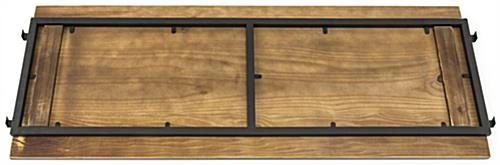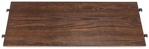 This outrigger add-on with dark wood shelves and bracket brings added sales space to your existing pipeline wall mounted display. Each set features a pine wood construction that complements the industrial style. Each add-on unit with dark wood shelves includes a metal frame and has welded metal hooks to easily attach to the included and existing uprights. For durability the metal build has a powder coated matte black finish. Add to your existing display and create a full retail environment by ordering your add-on unit with dark wood shelves today!