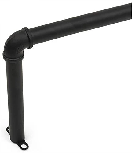 This pipe outrigger add-on unit with hang bar will help create a full industrial retail environment on your sales floor. Adding on to your existing fixture, the hanging rail allows for a front facing view of products to generate customer interest from anywhere in your store. The included outrigger add-on unit with hang bar touts a matte black powder coated finish with 4 holes at different heights to configure your dual spoke rail at the level of your choice. At 80” tall and only 20” in depth, you will have an eye catching display that won’t compromise on space. All mounting hardware is included to get this add-on unit with hang bar added upon delivery!