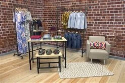 This pipe double tier ballet rack will bring industrial appeal to your retail store’s décor. The matte black fixture features 4 wheels, 2 locking, for ease of portability and safety when displaying products. The industrial double tier ballet rack design adds depth with the tall bar standing 78” tall and the short at 63” allowing you to merchandise different types of clothing on each. This promotional fixture features a powder coated metal build for durability and industrial style. Included with the ballet rack is a wrench for a stress free assembly. Outfit your retail store today with this unit and separate your décor from your competitors.