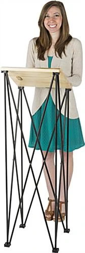 This portable lectern features great construction quality at an unbeatable price. Designed with portability in mind, this podium weighs only 11 lbs.! Featuring four metal legs and a wooden birch desktop surface, this lightweight lectern couldnβt be more classically simplistic. The legs neatly fold together to conveniently fit into the included carrying bag. By design, this unique podium takes up very little floor space, and can be easily moved from one area to another by one person. Ideal for trade shows and exhibitions, this lectern can be assembled without tools in minutes and can be packed away quickly. The carry bag is only 50β long and can easily fit in the truck of the car while travelling, or in any closet for efficient storage.
