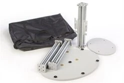 This truss plasma stand is an ideal monitor stand for use at trade shows. A monitor stand, like a plasma TV stand and an LCD stand, has an intriguing truss design that will draw customers over to your booth. The entire display folds down to allow for easy transport, and is easily assembled in a few minutes with virtually no tools required. A 42″ TV stand, monitor stand features truss poles that all screw into each other simply by turning each rod. The monitor stand has an oval base with (7) rubber tipped feet on the bottom to help with stability.