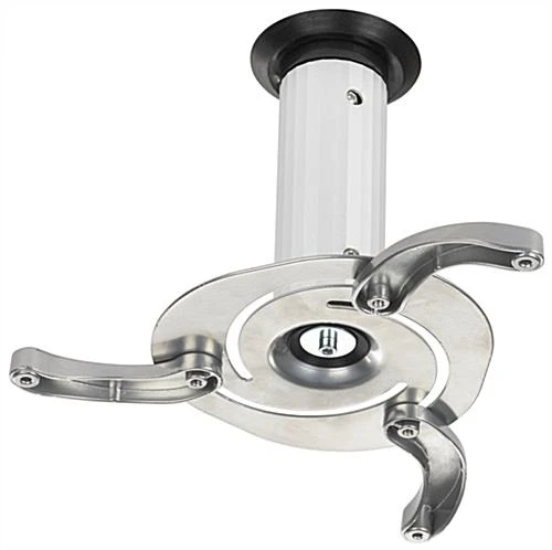 If you’re looking to maximize both your space and your presentations, try this universal ceiling projector mount. Compatible with most models on the market, this product features fully adjustable mounting cylinders that come in two sizes for the perfect presentation angle. With a weight capacity of 22lbs., this projector mount bracket works best with small to medium-sized A/V equipment. Designed for versatility, this 360° rotating product can tilt ±15°, providing flexibility for your presentation space regardless of size or setup. Every unit also features cable management for a clean, organized look. Made from durable aluminum, this projector mount is a safe way to install and use your equipment. This rotating unit is ideal if you are looking for a compatible and fully adjustable bracket for your presentation space.