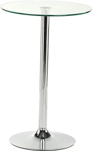 This glass high top table and chairs, such as trade show furniture, is portable for easy transportation. The collection can easily be moved around to achieve an alternative atmosphere in a room or for redecorating. When guests are about, moving the modern glass high top table and chairs out of the way for more space takes just seconds! The tall and narrow, round design of this collection makes it ideal for small spaces. This glass high top table and chairs that are a contemporary design provides just enough room for larger fixtures while maintaining its function as a dining set. Comfortably sit two individuals for dinner or four for conversation and drinks at this dinette! The heart of this design is a round glass tabletop and wood chairs giving the set a neutral appearance with a taste of sophistication. This glass high top table and chairs that are counter height can suit any setting and revamp any outdated furniture sets! These pieces are also sold separately on this site to mix and match collections. Place an order today!