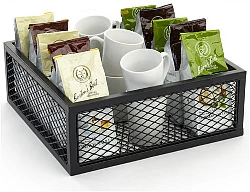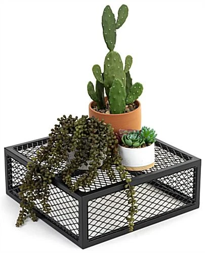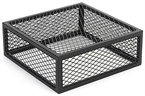 This iron mesh cube storage riser is the perfect modern product display option for your boutique, retail store, art gallery, and more. Add vintage style to any space with this 16″ W x 16″ D x 6″ H black powder-coated metal pedestal. This modern mesh cube storage riser will add height and contrast to any store display to help grab your customers’ attention and showcase your products in the best light. With an overall weight capacity of 100 pounds, you can feel confident putting items on this pedestal without harming the unit’s structure and build. This rustic modern display box can be paired with and to create a cohesive and visually appealing vintage style showcase in your shop or your next catered event. You will be pleased with how quickly this lightweight mesh cube storage riser elevates your in-store exhibits to draw in your customers!