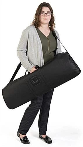 This 3D layered roll up banner stand features custom digitally printed graphics on both the front parabolic shaped panel as well as the full-sized back piece. The retractable 79” dual display is great for creating dynamic presentations yet they feature a portable design. Let this 3D roll up banner stand with parabolic shaped front panel and custom printed graphics on both inserts speak for themselves at your next marketing event. Each backdrop creates an ideal advertisement that will help draw attention, increasing sales and brand consciousness. These retractable units include a black canvas carrying bag for easy transporation and both panels come pre-installed for immediate use. This 3D roll up banner stand with custom printed stiff polyester panels are user friendly, creating a stunning portable display that’s easy to assemble and break down.