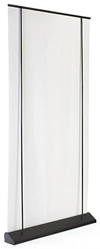 A banner stand has black aluminum construction that fits in with any setting as well as providing a durable display. A banner stand includes a carrying bag for easy transport. The bag has a shoulder strap that makes it easy to carry for nearly any person. The retractable banner display, banner stand has folding poles that hold up your graphic and are stored in the carrying bag. A banner gripper securely holds your graphic on top of the display. Use a banner stand at your next event to grab the attention of all passersby and to lead them to your business!