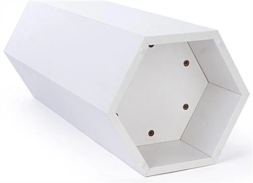 This set of 3 hexagonal gallery pedestals is made of laminated white particle board for a sleek and cost-effective design. These modern retail fixtures are perfect for store and boutique product displays, museum or art gallery showcase, or wedding/event décor. These hexagonal gallery pedestals are sold together to conveniently provide you with a 30″, 36″ and 42″ stands that can be used individually or together to create one impactful exhibit. These hexagon retail fixtures are reinforced with rubber feet on the bottom to help them stay in place and prevent them from scratching the floors in your museum or boutique. With an overall width of 13.7″, there is plenty of space for you to showcase beauty items, designer bags, jewelry, sculptures, framed artwork or photography, and so much more. This set of 3 hexagonal gallery pedestals will help you create modern displays that leave a lasting impression on your guests and customers long after they leave your store or gallery!