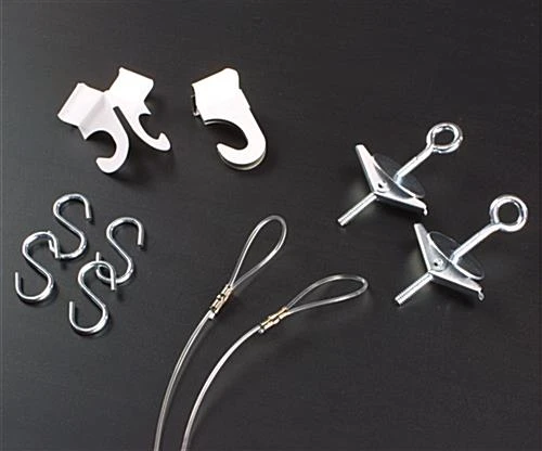 This poster hanging kit supplies all the items needed for hanging posters and banners. This sign hanger hardware is specially designed to go with our banner and poster hangers.