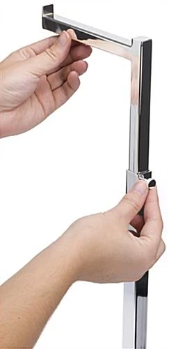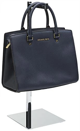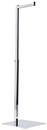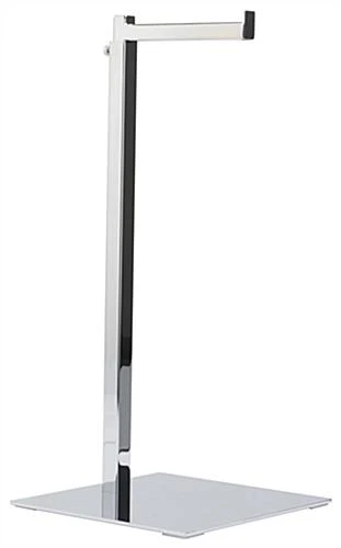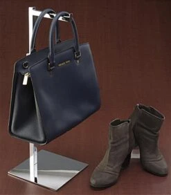 This countertop purse display is a great adjustable store fixture for retail outlets! Hang a single handbag on the 5.75” deep rail and customize your table with other accessories such as leather cleaners, jewelry, and shoes! The adjustable purse display can be set at different heights ranging from 17” to 31” depending on the type of pocket book being presented. Four non-scratch pads are adhered to the base of this chrome handbag stand to ensure that your tabletops remain unmarked. Constructed of durable steel, this purse display can be used time and again as different fashion trends come and go. The chrome finish maintains a continuous fresh and sleek look, making it ideal as a professional store fixture.