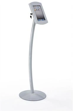 These floorstanding fixtures are crafted from quality materials to withstand extended use within indoor business settings. A tablet stand, that is made from metal, is durable and therefore ideal for retail advertising displays. These mounting accessories will also coordinate with any setting they are placed in. This mount for Apple iPad devices, silver tablet stand features a satin finish. The universal bracket included with this unit is designed for use with Apple® iPad enclosures, interactive Android devices and flat screen monitors (sold separately) with a specific hole pattern on the back. Digital photo frames and dynamic advertising monitors, with compatible mounting holes, can all be mounted to this universal tablet stand for iPad. Each fixture is sold without an electronic device, for users to mount previously purchased interactive touchscreens or flat screen monitors. Each tablet stand, that is sold separately, is designed for use with interactive devices and flat screen monitors with 75mm x 75mm or 100mm x 100mm mounting holes on the back.