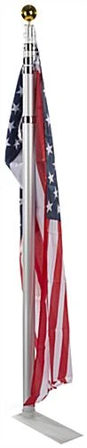 This portable flag pole has a telescoping feature allowing it to extend up to 20’ tall. Included is an iron tire mount allowing you to represent your nation’s or sports team’s banner at your next tailgate or camping adventure. The aluminum flag pole comes with a 3’ x 5’ American flag and a gold ball finial post top. If you do not want to use the tire mount, the mast features a PVC pipe for alternate ground insert. The flag pole features double hooks for flying two flags atop the aluminum mast. Outfit your next tailgate, campsite or stadium event with this unit and its easy set-up to best represent the pennant of your choice!