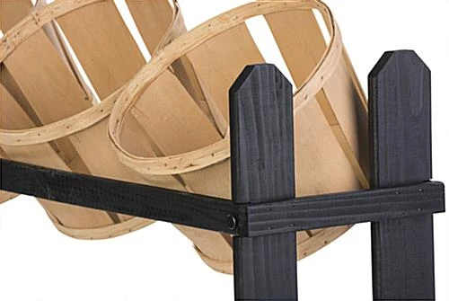 This basket display stand creates a beautiful showcase of bulk merchandise or products while complementing rustic store décor flawlessly. With a 3-tier design, the country charm of this fixture can exhibit a variety of impulse items or sale goods to attract customers, either in a shop or at a farmers market. Set on a 44” tall black pine frame, this bushel basket display stand is built for permanence and beauty. Each of the 9 oak stain bins included are 7.5” deep, letting you store a variety of items in attractive wooden compartments with MDF bases for durability. Angled on each tier for optimal viewing, passing browsers at a farmers market or customers at your shop will be able to easily access the bins and explore your merchandise. Use this display stand as a dump bin for impulse buys or as a showcase of your best products!