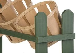 This wood basket display is great for bulk merchandising in gift shops, candy stores or specialty markets. There are 3 tiers of 3 wooden bins with durable MDF bases for stability. The baskets are 12″ diameter x 7.5″ deep and are seated in the display stand securely so you can fill them with your bulk items. Many stores use these popular rustic merchandisers to hold wrapped candy, fruit and novelty items. The unit’s full dimensions are 38.5″ wide x 44″ high x 11.25″ deep. Spruce is a soft wood, and will show imperfections such as knots or a slightly rough feeling finish. It does make for a lightweight, sturdy and inexpensive display, and the MDF base of each bin provides support and stability. Some assembly is required, we provide the hardware and allen wrench for these display baskets.
