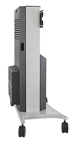 These mobile audio visual carts, also known as LCD trolleys, have four 5″ caster wheels with two locking for stability. Rearranging a room is simple with the use of this stand and users are not restricted to one layout. These conference audio visual carts are ideal for use in offices, educational institutions, training rooms, and more! The 100% solid steel construction and two toned powder coating is meant to last! These LCD equipment stands come with a 6-port surge protector to safely plug in devices. The locking mechanism is ideal when using this AV trolley in high traffic establishments. Built in cable management features ensures organization of wires that would otherwise go awry. Manufacturer model# RPS-1000S.