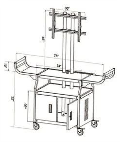This flat screen cart can support up to an 80” monitor. Utilize this mobile panel mount for oversized and large plasma TV’s. Designed with 2 curved handles to protect the widescreen LCD, both attachments also provide maneuverability for the screen cart. Durable steel construction with a black powder coated finish creates a mobile panel display that will withstand extended use and an extra large wide top shelf for presentation materials. Equipped with a cord winder and a 15’ power strip with 4 outlets, the cart allows for ideal positioning whether in a classroom or conference room. Each LCD mount is affixed to a dual post and includes a tilting bracket. Stow away additional audio video equipment within the locking storage cabinet. Freely transport your large monitor with each mobile panel display including 4 swivel casters (2 locking) from one location to the next.