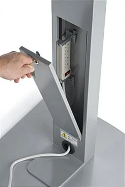 Heavy duty construction crafted from steel and aluminum lend way to the modern design of this touch screen stand with wheels. Mount your monitor with ease by utilizing the quick attach brackets on the sides that allow effortless installation. Each mobile touch screen stand with wheels features a lockable back compartment that allows for safe keeping of electronics, cables, and the included surge protector. While the floor standing unit features a flat base, a tilt-and-roll design allows the heavy duty unit to be moved around for greater exposure to passersby. The included mount brackets are both VESA compatible and allow monitors ranging from 10” to 60” to be displayed. Additionally, the angled design of this screen stand offers an easy to use experience for interactive panels.